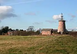Ravensmoor Windmill is a former windmill located to the south of Wrexham Road (A534) between the villages of Acton and Burland, Cheshire, England. It is recorded in the National Heritage List for England as a designated Grade II listed building.[1] The structure dates from the early 19th century, and is constructed in red brick. It consists of a circular tapering tower with a boarded roof. The original roof and sails are no longer present, and water pumping mechanism has been installed on the roof. There are windows on three levels, some of which are blocked.[1][2]