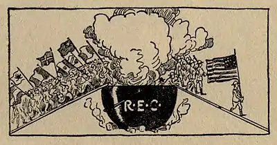 In addition to lessons in English grammar, vocabulary, and writing, the Recruit Educational Center also provided instruction in military protocol, U.S. history, geography, citizenship, and political economy.[3] Among the lessons reportedly learned by the recruits were the shortcomings of labor unionism and the superiority of capitalism to Bolshevism. The whole experience was designed to "influenc[e] a foreigner’s environment, military duty, education, amusements, athletics, and religious observances that all combined may favorably react upon his character".[4] In 1919, a cadre of recent graduates, representing fourteen different national backgrounds, was sent on a publicity tour to promote the Recruit Educational Center. During the tour, the group performed public demonstrations of "The Cadence System of Close Order Drill", a particularly grueling routine that demonstrated their remarkable efficiency and discipline.[5]