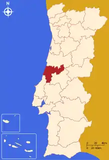 The Comunidade Intermunicipal da Região de Leiria (Portuguese pronunciation: [ʁɨʒiˈɐ̃w lɐjˈɾi.ɐ]; English: Leiria Region) is an administrative division in western Portugal. It was created in 2014, replacing the former Associação de Municípios da Região de Leiria created in 2009.[1] Since January 2015, Região de Leiria is also a NUTS3 subregion of Centro Region, that covers the same area as the intermunicipal community.[2] The seat of the intermunicipal community is Leiria. Região de Leiria comprises a large part of the former district of Leiria. The population in 2011 was 294,632,[3] in an area of 2,449.12 km².[4]