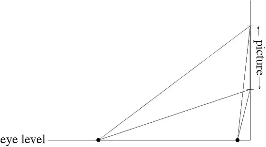 β = the angle of elevation of the top of the painting, seen from the viewer's position.