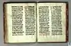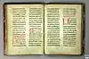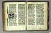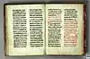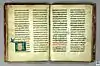 It was first recorded in the last half of the 14th century, in the time of Charles IV, who gave it to the just-founded Emmaus monastery in Prague (Czech: Emauzský klášter, Na Slovanech, Emauzy), where the Slavonic liturgy was to be celebrated (the church of the monastery was dedicated to Saints Cyril and Methodius, St. Vojtěch, St. Procopius, and St. Jerome, who was considered to have translated the Gospels from Greek to the Old Slavonic language).[1] The text was believed to have been written by the hand of St. Procopius, abbot of Sázava Monastery. It was probably lost from Prague in the time of the Hussite Wars; after some time (1451[3]) it appeared in Istanbul, where the books by St. Jerome were said to be kept.[2] In 1574, it was bought by Charles, Cardinal of Lorraine (from the Patriarch of Constantinople, whom he knew from the Council of Trent[2]), and donated to Reims Cathedral.[1] Because the book was nicely decorated and it was believed it had been scribed by St. Jerome, the manuscript began to be used in the coronation ceremony of French kings, who took the oath of the Order of the Holy Spirit by touching the book.[1]