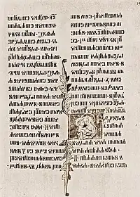 The Cyrillic part includes a pericope from 27 October to 1 March following the Greek Catholic rite.[2] The Glagolitic part covers pericopes from Palm Sunday to the Feast of the Annunciation (March 25) following the Roman Catholic rite.[2] In a special postscript a Bohemian monk noted: "The Year of Our Lord 1395. These Gospels and Epistles were written in the Slavic language ... the other part was written by the hand of St. Procopius, abbot, and this text was offered by Charles IV, Emperor of the Romans, to the Slavic monastery, in honor of Saint Jerome and Saint Procopius, God, please give him eternal rest. Amen."[2]
