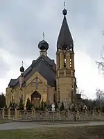 The construction of the Orthodox Church of the Holy Spirit in Białystok began in 1982 and was completed in 1996, due to the efforts of pastor Serafin Żeleźniakowicz.[18] In 1980, there were only four parishes in Białystok, while in 2000 there were already eleven. To the existing parishes of St. Nicholas the Wonderworker, as well as in Fasty, Dojlidy and Starosielce, the parishes of the Holy Spirit, St. George the Victorious, St. Panteleimon, Resurrection, Hagia Sophia, All Saints and military Ordinate st. Peter and Paul joined. In the 1970s and 1980s, the construction of new Orthodox churches developed on a larger scale, among other due to increasing demand as a result of growing emigration of Orthodox belivers from villages in Bialystok Region to the city.[19][20]