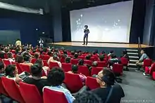 Laza welcomes the audience to a competition screening of RFC 11 at the Institut Français de Madagascar, 2016.
