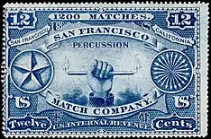 The Commissioner of Internal Revenue took bids for the printing and production of the first U.S. revenue stamps in an effort to raise revenue for the great costs of the war.[2][3] The Department of Internal Revenue awarded Butler & Carpenter of Philadelphia the printing contract who were paid $19,080 to produce one hundred and six printing plates, including the rolls, dies and all material necessary to maintain stamp production.[4] Butler & Carpenter soon began producing the first revenue stamps which were issued for use beginning Oct. 1, 1862.[5]