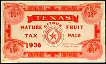 A 1936 Texas state revenue stamp for the tax on citrus fruit.