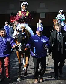 Ricardo Santana Jr. (born November 19, 1992, in Panama) is a jockey in American Thoroughbred racing who won six consecutive riding titles from 2013 through 2018 at Oaklawn Park and in 2019 won the Breeders' Cup Sprint as well as the Prince of Wales Stakes (2019), the second leg of the Canadian Triple Crown series.[2][3][4]