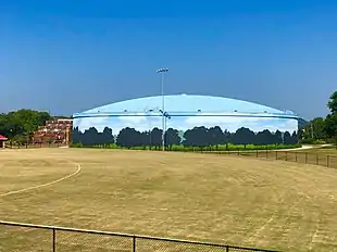 Construction began in 2009 on the West Park Equalization Basin and Wet Weather pump station.[13] This includes two above-ground tanks large enough to temporarily hold 31 million gallons of liquid when sewer flow exceeds the capacity of the treatment plant. The tanks, called "equalization facilities", hold the sewage until the stormwater recedes, then send the sewage to the treatment plant at an optimal processing rate. The project is aided by a wet-weather pump that can handle 45 million gallons per day.[13] The West Park Project was dedicated by Mayor David Briley on August 18, 2018,[14] and its site includes recreational facilities including a lighted softball field, basketball court, picnic area, a pavilion with public rest rooms and other amenities.[13] Artist Eric Henn created a mural on the tank to add public art to the neighborhood.[14]