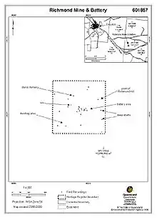 - 1 2 3 4 5 6 7 8 9 10 11 12 13 14 15 16 17 18 19 20 21 22 23 24 "Richmond Mine and Battery (entry 601857)". Queensland Heritage Register. Queensland Heritage Council. Retrieved 1 August 2014.