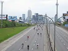 The Ride takes place on Toronto's Don Valley Parkway (DVP) and Gardiner Expressway, major six-lane highways leading into the downtown core on the eastern and southern side of the city. On the first Sunday of every June, the DVP and Gardiner are closed and turned over to the Ride in the morning. Three routes are planned out, at 25, 50, and 75 km, offering a challenge for recreational and endurance riders alike. Shorter rollerblading events were formerly included, but were not available in 2012.