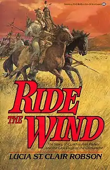 Ride the Wind (1982) by Lucia St. Clair Robson is the story of Cynthia Ann Parker's life after she was captured during the Comanche raid on her family's fort. In 1836, when she was nine years old, Cynthia was kidnapped by Comanche Indians. This is the story of how she grew up with them, mastered their ways, married one of their leaders, and became, in every way, a Comanche woman. Her son Quanah Parker was the last Comanche leader to surrender. It is also an account of a people who were happiest when they were moving, and a depiction of a way of life that is gone forever.