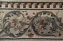 Ancient Greek rinceau on a mosaic of a stag hunt, Pella, Greece, unknown architect or craftsman, 4th century BC