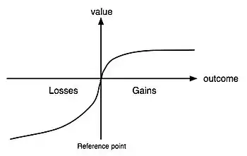 A framing effect occurs when transparently and objectively identical situations generate dramatically different decisions depending on whether the situations are presented or perceived as either potential losses or gains.[10] Framing effects play an integral role in risk-aversion, as an extension of PT's S-shaped value function, which illustrates the differences in how gains and losses are valued relative to a reference point.