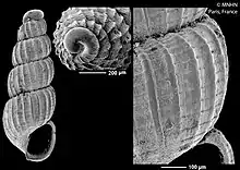 | Shell of Rissopsetia altispira (specimen at MNHN, Paris) | |