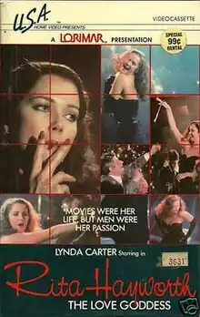 Rita Hayworth: The Love Goddess is a 1983 American made-for-television biographical film directed by James Goldstone. Based on the 1977 biography Rita Hayworth by John Kobal,[1] it deals with real events in the life of actress Rita Hayworth from 1931 to 1952.[2] It was broadcast by CBS on November 2, 1983.[3]