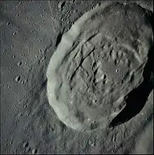 Ritter is a lunar impact crater located near the southwestern edge of Mare Tranquillitatis. Its diameter is 29.5 km. It was named after German geographer Carl Ritter and German astrophysicist August Ritter.[1]