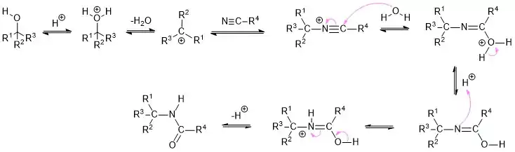 The Ritter reaction is a chemical reaction that transforms a nitrile into an N-alkyl amide using various electrophilic alkylating reagents. The original reaction formed the alkylating agent using an alkene in the presence of a strong acid.[1][2][3][4]