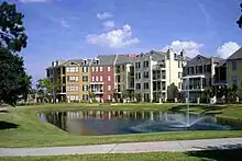 Dwellings include a mix of owned homes, rental homes, attached townhomes and numerous residential apartment buildings with businesses on the first floor, located within the planned community of River Ranch.