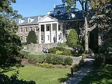 An early advocate of outdoor experiences for young people, Hackett started a summer camp known as Camp Riverdale at Long Lake in the Adirondacks to provide summer recreation for his students.[3] By 1920, Hackett had acquired three acres on Fieldston Road for the school and built a classroom building and dormitory. The 100-room dormitory, designed by McKim, Mead, and White,[4] later became known as Hackett Hall. In 1924, he started the Neighborhood School for boys and girls from grades one to three, and in 1933, the Riverdale Girls School. By World War II, the school attracted both day students and boarders; one student in six or seven came from another country.[5]