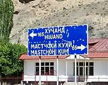 Road signs in Tajikistan are similar to the signs of other post-Soviet states and most European road sign systems. Like all post-Soviet states, Tajikistan is a signatory to the Vienna Convention on Road Traffic and the Vienna Convention on Road Signs and Signals.[1] Order of the Government of the Republic of Tajikistan of June 29, 2017 No. 323 "About Traffic regulations"[2] (Tajik: ҚОИДАҲОИ ҲАРАКАТ ДАР РОҲ Бо қарори Ҳукумати Ҷумҳурии Тоҷикистон аз “29” июни соли 2017) regulates road signs and markings. Road signs ensure transport vehicles move safely and orderly, as well as, to inform both pedestrians and motorists of traffic rules. Images of road signs are mostly based on the Soviet ГОСТ 10807-78,[3] Belarusian СТБ 1140-2013[4] and Russian ГОСТ Р 52290-2004[5][6] standards.