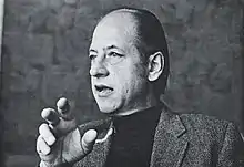 At KCAI Kelly, rather than building a department from scratch, was tasked with transforming the existing commercial arts program with its heavy emphasis on illustration.[15] His work developing the department's curriculum included previous experiences at Yale and in Minneapolis. Gordon Salchow, a recent alumnus from Yale (and a former student of Kelly's in Minneapolis) was one of his first faculty hires.[15] During this time Kelly became aware of the work of Armin Hoffmann's students at the Kunstgewerbeschule Basel (later Schule für Gestaltung Basel).[15] He started a correspondence with Hofmann inquiring about alumni to come teach in Kansas City. At the recommendation of Hoffman Kelly hired Inge Druckery in 1966 as the first Basel-trained graphic designer to teach full-time in the US. Kelly subsequently hired Hans Allemann and Chris Zelinsky the following year in 1967.[16]