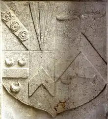 - ↑ Pole, p.486; Griggs, p.4, states the chevron is for Fulford, yet his grandfather's 2nd wife Anna/Alice Fulford, daughter of Sir Baldwin Fulford, was not an heiress (she had a brother) and thus the Fulford arms would not be quartered by the Cary family, according to the laws of heraldry