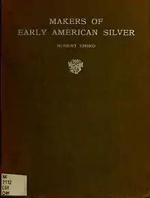 5. "Bibliography of books about Silver and Silversmiths". Archived from the original on 2008-03-27. Retrieved 2008-03-01. A very early study, predating even French's "Walpole List" by two years. Robert Ensko was a New York silver dealer, as was his son Stephen G.C. Ensko, who would eventually publish three more books on American silversmiths and their marks, dubbed "Ensko 1" (1927); Ensko 2 (1937) and Ensko 3" (1948); (an "Ensko 4" was published posthumously several years ago). This book thus precedes "Ensko 1" by some 12 years. In this work Ensko was attempting to list known and unknown makers of American silver, their locality and working dates. He lists marks where they are known, and only concedes the honor of being the first book of marks of American silversmiths to French because Ensko does not actually picture reproductions of the marks themselves, but simply lists them. He also includes several lists of unknown marks, including a group of pieces from the Clearwater Collection, and asks the readers to send him any information they might have. An exceedingly interesting seminal study of American silversmiths.