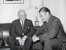According to Special Counsel Ted Sorensen, Kennedy regarded McNamara as the "star of his team, calling upon him for advice on a wide range of issues beyond national security, including business and economic matters."[22] McNamara became one of the few members of the Kennedy Administration to work and socialize with Kennedy, and he became close to Attorney General Robert F. Kennedy, eventually serving as a pallbearer at the younger Kennedy's funeral in 1968.[23]