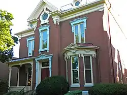 The Robert W. Gardner House in Quincy, Illinois, Adams County, is designed in the Second Empire style (along with a few elements common to Italianate style) and found its place among the locales on the National Register of Historic Places on April 20, 1979.[1][2] Though the building was constructed in the later half of the 19th century, 1873, the architect as well as the builder are unknown. The interior woodwork, all original, has been fully restored including the walnut staircase. Gardner invented the speed governor used in steam engines and the Gardner Museum of Architecture and Design in Quincy is named for him.[2]