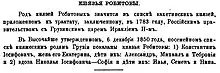 The Robitashvili had the title of tavadi (prince) in the Kingdom of Kakheti and were included in the list of the Georgian nobility attached to the Russo-Georgian treaty of Georgievsk of 1783. After the Russian annexation of Georgia, the family was confirmed among the princely nobility (knyaz) of the Russian Empire in 1850. The surname was Russified as Robitov (Russian: Робитов).[1]