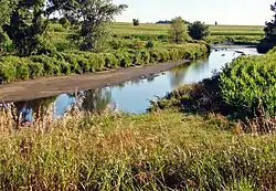 The Rock River is a tributary of the Big Sioux River, about 144 miles (232 km) long,[3] in southwestern Minnesota and northwestern Iowa in the United States. Via the Big Sioux and Missouri rivers, it is part of the watershed of the Mississippi River. The river's name comes from a prominent rocky outcrop about 175 feet high (designated "The Rock" on Joseph Nicollet's 1843 map of the area) of reddish-gray Sioux Quartzite, about 3 miles (5 km) north of Luverne.[4] The outcrop of quartzite is contained in Minnesota's Blue Mounds State Park.