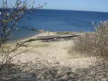 The 5,200-acre (21 km2) Rocky Point site was decommissioned in 1978 and demolished in the 1980s. It now consists of many concrete ruins and downed telephone poles and radio towers, owned by the New York State Department of Environmental Conservation. It is part of the Rocky Point Pine Barrens State Forest, which is in the Long Island Central Pine Barrens. The site gives an interesting insight into the 1920s, because—being in the middle of the forest—the footprints of the site remain largely untouched since its operational period. The western terminus of the 125-mile-long (201 km) Paumanok Path hiking trail is in the forest, with the eastern terminus at the Montauk Point Light.[4]