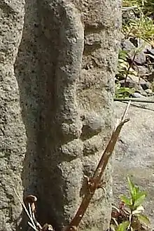 The stone is most notable, however, for its inscription, which is found on both of the sides and on the cross face. It is the longest of all Pictish inscriptions, and like most Pictish inscriptions, is written in the Ogham alphabet. Much of the inscription is weathered, but it does contain the Pictish name Ethernan (a prominent Pictish saint), written as "EDDARRNON".