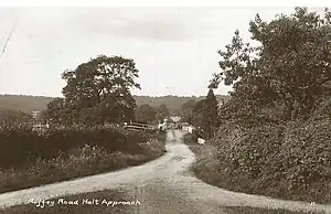 Roffey Road Halt is a now disused station on the Arun Valley Line in West Sussex, England and was the second station north from Horsham on the stretch to Crawley. It occupied a rural setting and opened on 1 June 1907. The anticipated housing growth did not occur and it closed in 1937. Some associated cottages were demolished in the early 1970s.[2] The only visible signs of its existence are a number of concrete posts that supported the platforms.