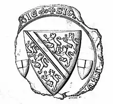 The barons were determined to separate control of the privy seal from the court, which they saw as the source of the nation's ills, and Northburgh seemed ready to work with them.[12] Under the terms imposed on the king by parliament, Northburgh was compelled to work in London with his staff, separately from the rest of the Court, which kept its distance from the barons.[13] He was in London with three clerks during the autumn of 1312 and again, with his staff enlarged to four, for the early part of 1313, and yet again, with two assistants, from February to May.[14] During these absences, John of Reading, a clerk in the royal household forged the privy seal and a major scandal broke, tainting for a time senior members of the royal household whom he tried to implicate in his crime. However, his trial in February 1313 concluded that he was acting alone and he was hanged, despite benefit of clergy.[15] In the summer of 1313 Northburgh was reunited with the king for a time, accompanying him on a journey to France, but was away again in the early part of 1314.[12]