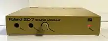 The Roland SC-7 General MIDI Sound Module is a stand-alone MIDI synthesizer module by Roland Corporation. It was released in 1992. It supports the General MIDI System and can also be used as a MIDI interface for a computer. The Roland SC-7 provides the basic (capital) Roland Sound Canvas sounds in a compact design for stand-alone, IBM PC/AT or Apple Macintosh computer use.