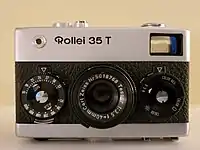 The Rollei 35 is a 35mm miniature viewfinder camera built by Rollei. The original Rollei 35, when introduced at photokina in 1966, was the smallest existing 135 film camera. The Rollei 35 series remains one of the smallest 35 mm cameras after the Minox 35 and Minolta TC-1. In 30 years, about 2 million Rollei 35 series cameras were manufactured. The Rollei 35 was manufactured by DHW Fototechnik up to 2015, the successor of Franke & Heidecke as small-batch production.[1] The last version is the Rollei 35 Classic, an updated Rollei 35 SE.