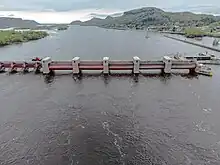 A roller dam is a type of hydro-control device specially designed to mitigate erosion. They are most often used to divert water for irrigation but the largest and most notable examples are used to ease river navigation. The world's first roller dam (German: walzenwehr) was constructed in Schweinfurt, Germany in 1902 to divert irrigation water south of the Main river.[1][2]