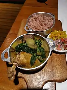 Romazava ([rumaˈzavə̥]) is the national dish of Madagascar,[1] consisting of greens, zebu meat, tomatoes, and onions, typically accompanied by a portion of rice.[2] An integral component of the stew is brèdes mafana, called anamalaho in Malagasy; the plant holds an acid amide called spilanthol in its buds that elicits a tingly, pungent, citrusy and mouth-numbing effect, inducing excessive saliva production.[3]