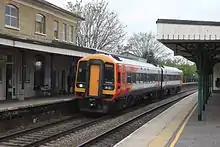 Romsey railway station serves the town of Romsey in Hampshire, England. It is on the Wessex Main Line, at the junction for the Eastleigh to Romsey Line, 80 miles 47 chains (129.7 km) from London Waterloo. The station is a Grade II listed building.[1]