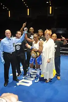 ![]() Referee Ron Lipton with boxing champion Ronica Jeffrey | |