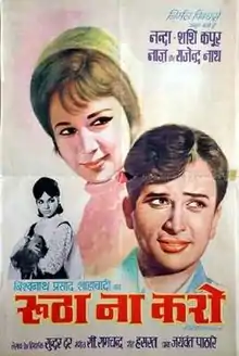 Rootha Na Karo is a 1970 Bollywood drama directed by Sunder Dar. The film stars Shashi Kapoor and Nanda in lead roles.
