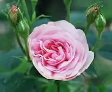 Rosa × alba, the white rose of York, is a hybrid rose of unknown parentage[1] that has been cultivated in Europe since ancient times.[2] It may have originally been grown mainly for the sweet scent of the flowers, but is now also used as a winter-hardy garden shrub.[2] Cultivated forms have white or pink flowers, and most have many petals. Hybrid cultivars have also been produced with red or yellow flowers.[2]