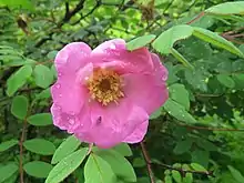 Rosa macrophylla, the big-hip rose, is a species of flowering plant in the family Rosaceae, native to the Himalayan region.[1][2][3] There are a number of cultivars, including 'Doncasteri', 'Glaucescens', 'Master Hugh', and 'Rubricaulis'.[4][5][6][7] 'Master Hugh' has the largest hips of any readily available rose.[8]