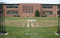 At the center of the school's courtyard is a spiraling brick walkway called the Roselle Catholic High School Labyrinth. The labyrinth is made of 8,000 bricks and was constructed in the summer of 2008 to commemorate Roselle Catholic's 50th anniversary as a school. A sign near the entrance to the courtyard explains its significance: