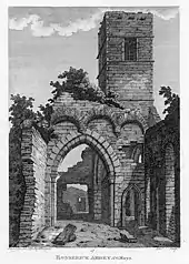 Rosserk Friary and Moyne Abbey are located close to each other,[2] north of Ballina on the west side of Killala Bay. Both were allegedly burnt by Sir Richard Bingham, Elizabeth I of England's governor of Connacht, in 1590 in Reformationist zeal.