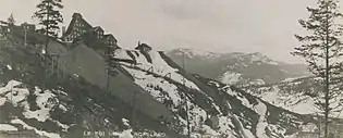 When Le Roi mine closed in 1929, big ore trains ceased on the CP Rossland–Trail section.[7] About 60 independent properties remained in operation on the mountain. In 1933, 10,000 tons were extracted, reducing to 335 tons in 1937. World War II ended mining on the mountain. By then, Rossland had become a bedroom community for Trail.[10] Highway improvements ended rail passenger service with Trail in 1936. However, the three times a week freight train continued. Frequency progressively reduced until the line was lifted in 1966. In 1951, CP rebuilt the original station, but this replacement was demolished in 1973.[7]