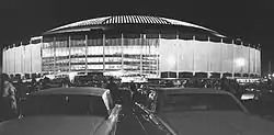 HSA also was responsible for the development of the Astrodome, initially known as the Harris County Domed Stadium, the first large covered baseball and football facility in the world; the earliest discussions of a domed stadium in Houston were held at Hofheinz's house.[1] Hofheinz later recounted the genesis for the Astrodome came from a 1962 visit to Rome with his wife Dene: "Mama and I were standing there looking at the Colosseum. It was a large, round facility and most of the stadiums in the United States had been built to conform to the shape of the playing fields. Rectangular. I studied the history of the Colosseum and I found out that on hot days they used to have the slaves pull a cover over the top made out of papyrus or whatever they used in those days. I guess they didn't want to spoil the lions' appetite with too much heat. And I found out, too, that the emperor and the bigwigs all sat at the top of the stadium. Standing there, thinking back on those days, I figured that a round facility with a cover was what we needed in the United States and that Houston would be the perfect spot for it."[9]