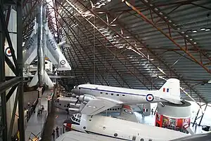 The Royal Air Force Museum Cosford, located in Cosford in Shropshire, is a free museum dedicated to the history of aviation and the Royal Air Force in particular. The museum is part of the Royal Air Force Museum, a non-departmental public body sponsored by the Ministry of Defence and also a registered charity.[2] The museum is spread over two sites in England; the other site is at the Royal Air Force Museum London at Colindale (near Hendon) in north London.