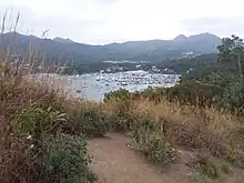 Che Keng Tuk and the Royal Hong Kong Yacht Club Shelter Cove viewed from a hill on Pak Sha Wan Peninsula.